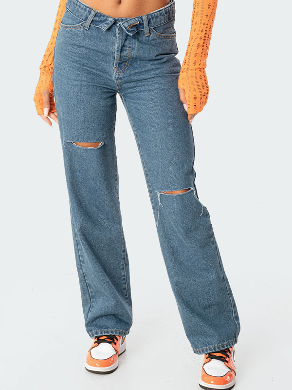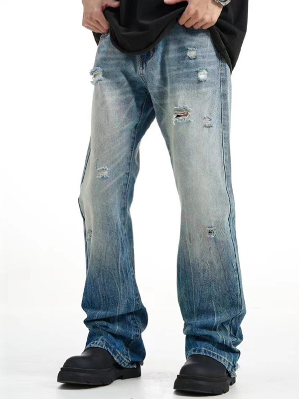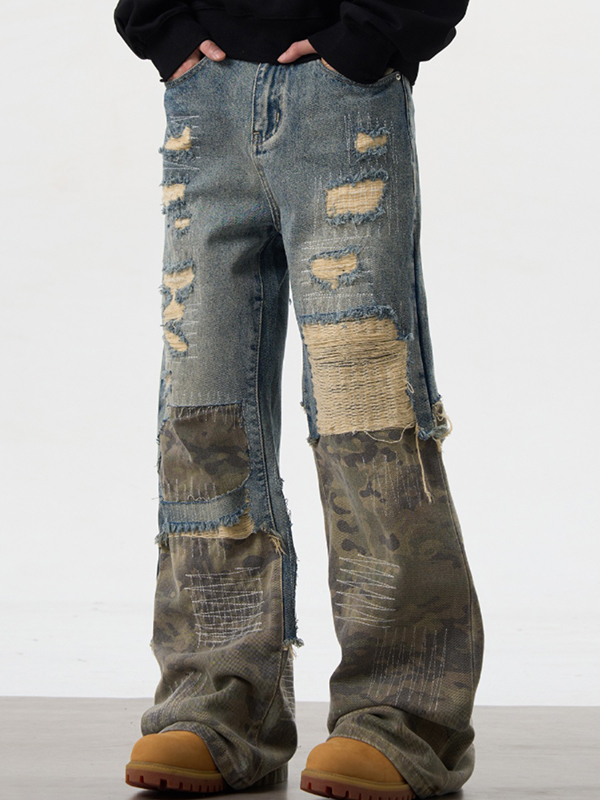 Vaqueros holgados rotos con costuras de camuflaje para hombre