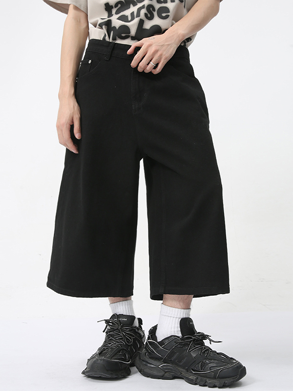 Pantalones cortos de pierna ancha sueltos rectos casuales retro para hombre