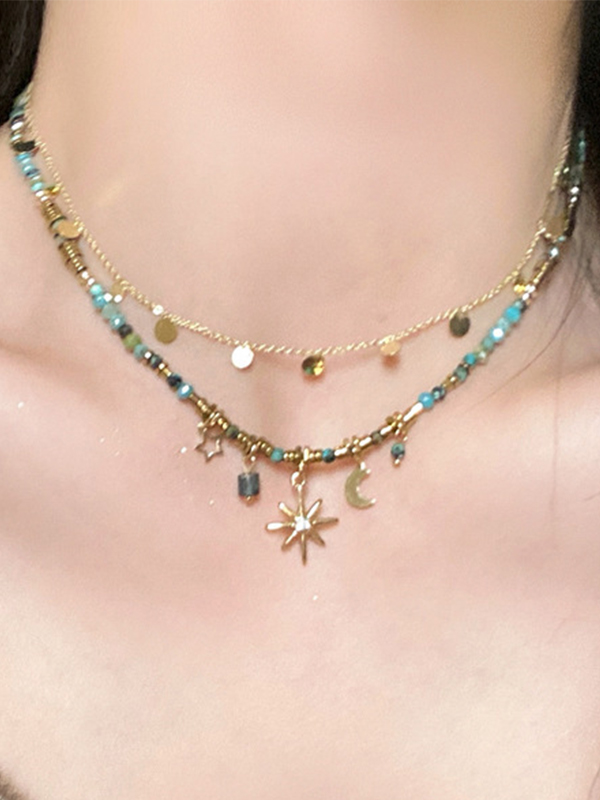 1 collar vintage de doble capa con forma de estrella y luna
