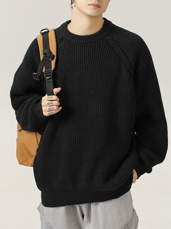 Suéter de cuello redondo con diseño de línea de hombros tridimensional