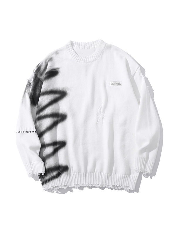 Suéter tipo jersey desgastado con grafiti para hombre