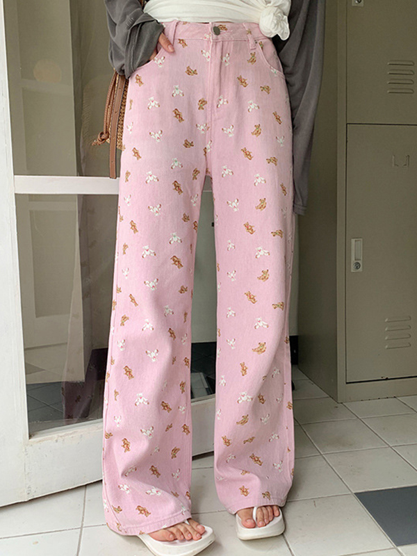 Vaqueros boyfriend con diseño de hojas caídas y espinas vintage