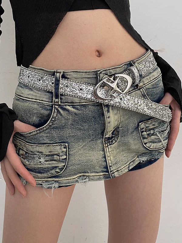 Cinturón con hebilla de metal con lentejuelas brillantes Y2K