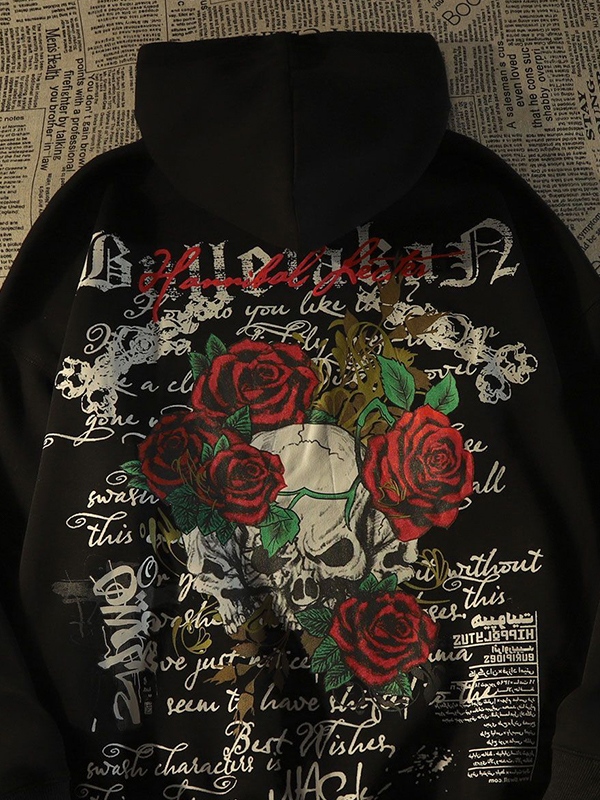 Sudadera con capucha extragrande con estampado de calavera de rosa gótica para hombre