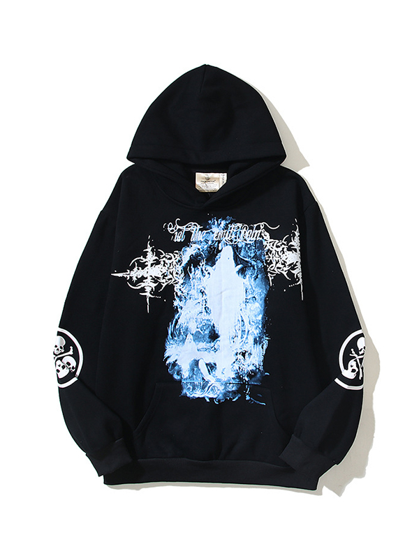 Sudadera con capucha suelta con estampado de esqueleto