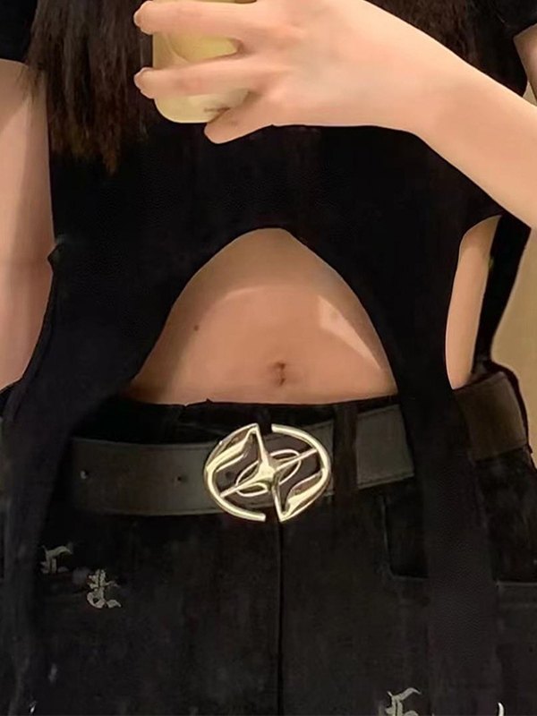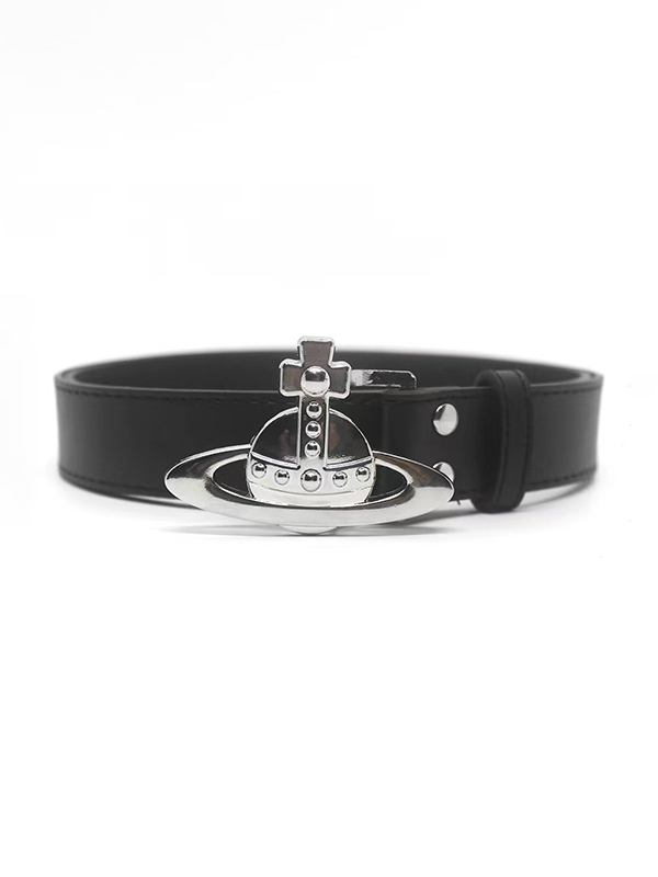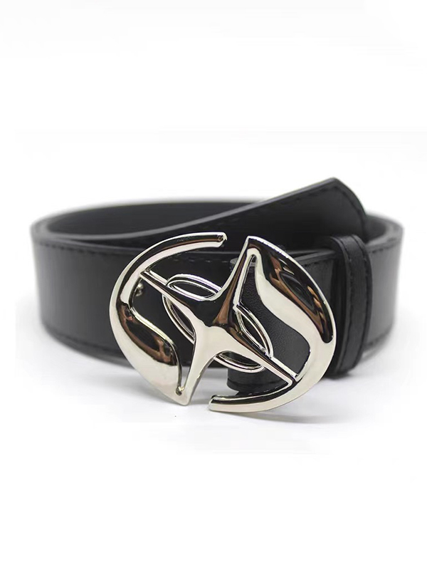 Cinturón con hebilla de piel sintética negra con logotipo de metal