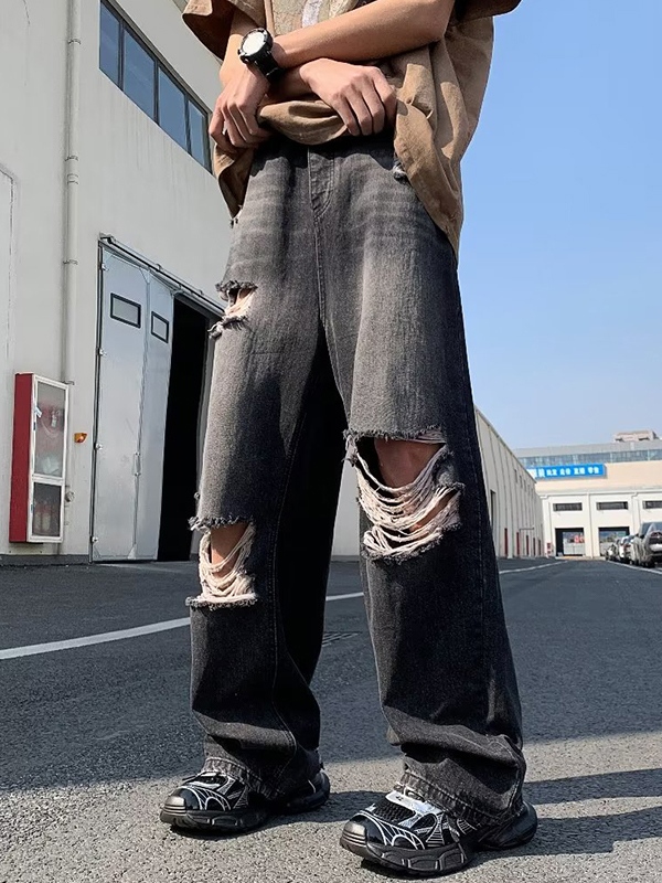 Vaqueros sueltos rasgados con lavado desgastado para hombre