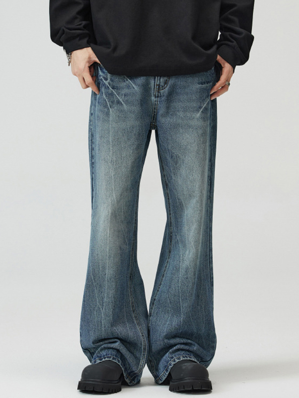 Vaqueros rectos y holgados con bigotes de gato estilo retro americano