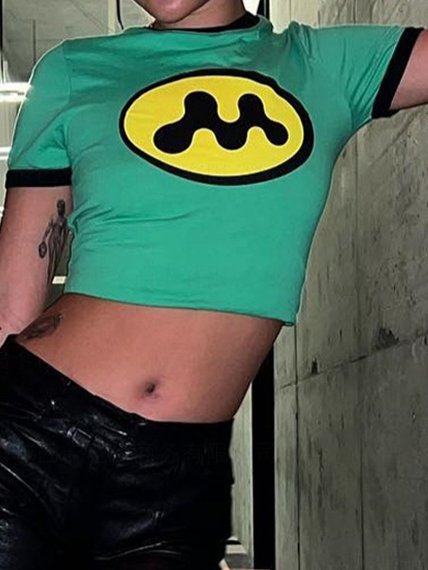 Camiseta de manga corta con estampado vintage de diamantes de imitación