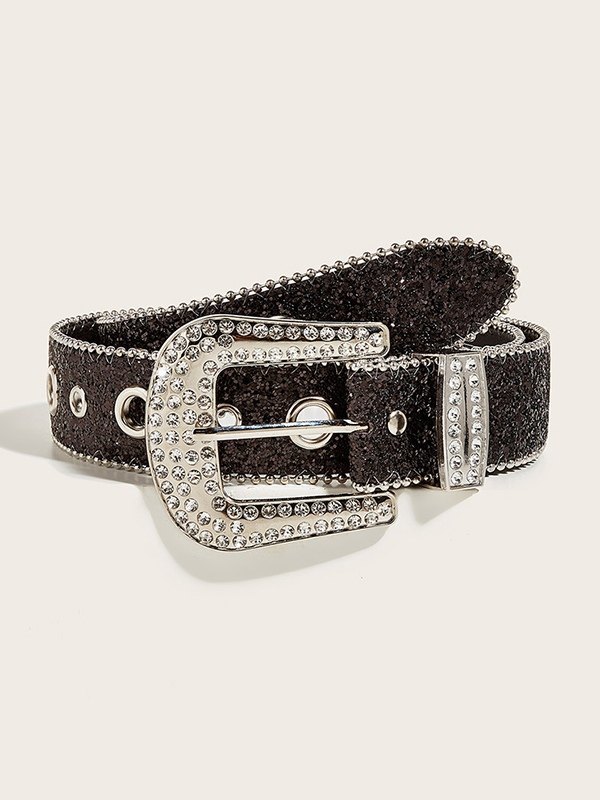 Cinturón con hebilla de lentejuelas adornada con diamantes de imitación