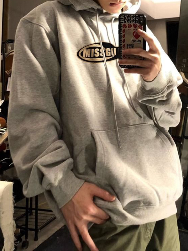 Sudadera con capucha extragrande de doble capa con letras para hombre