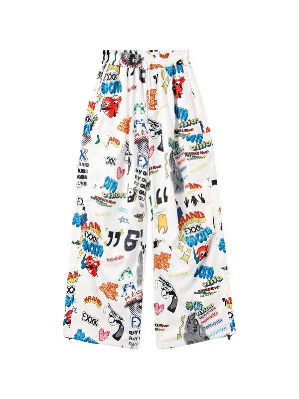 Pantalones de pierna ancha con estampado de grafiti interesante para hombre