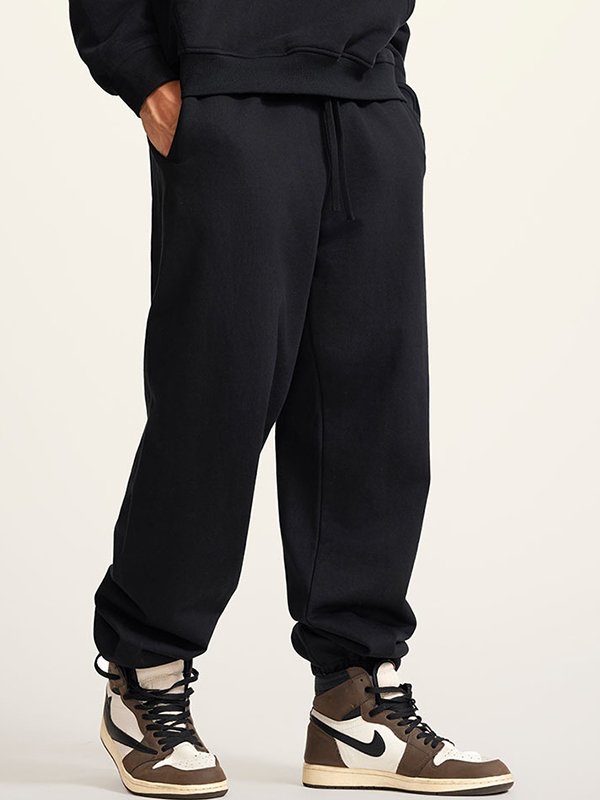 Pantalones deportivos básicos de color liso con pies atados para hombre
