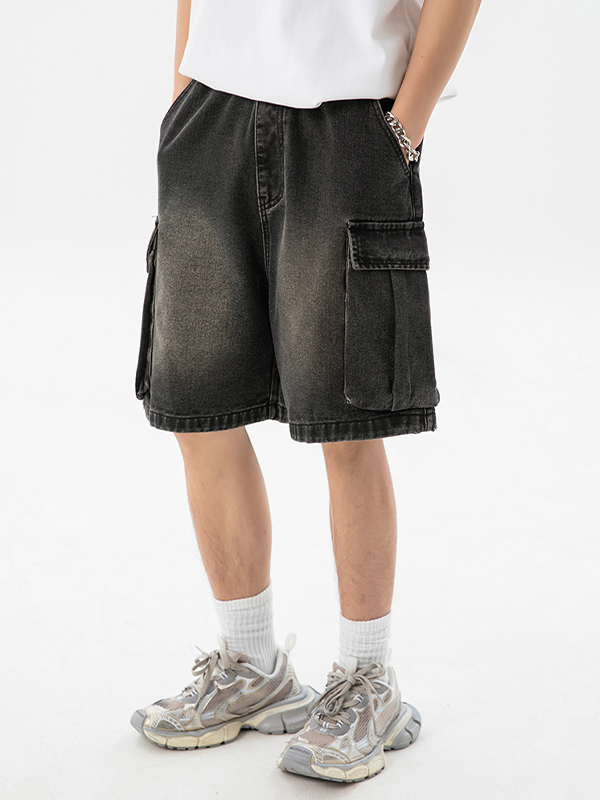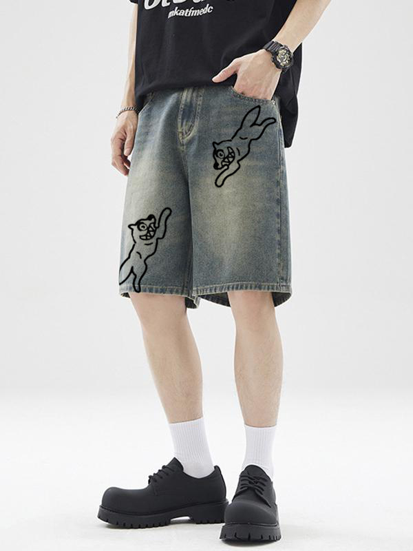 pantalones cortos de mezclilla casuales sueltos lavados para hombre