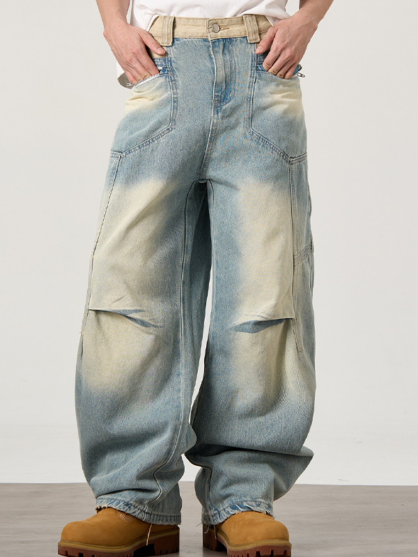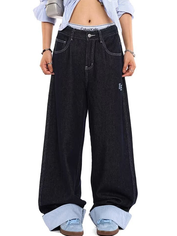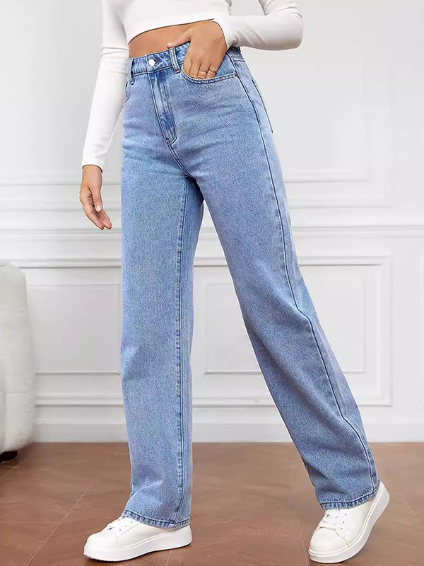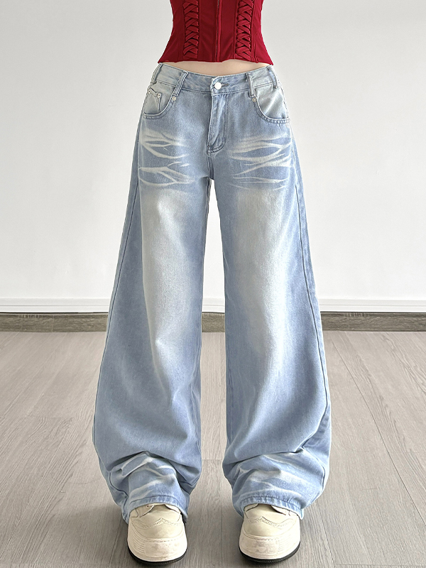 Vaqueros sueltos rectos lavados de moda
