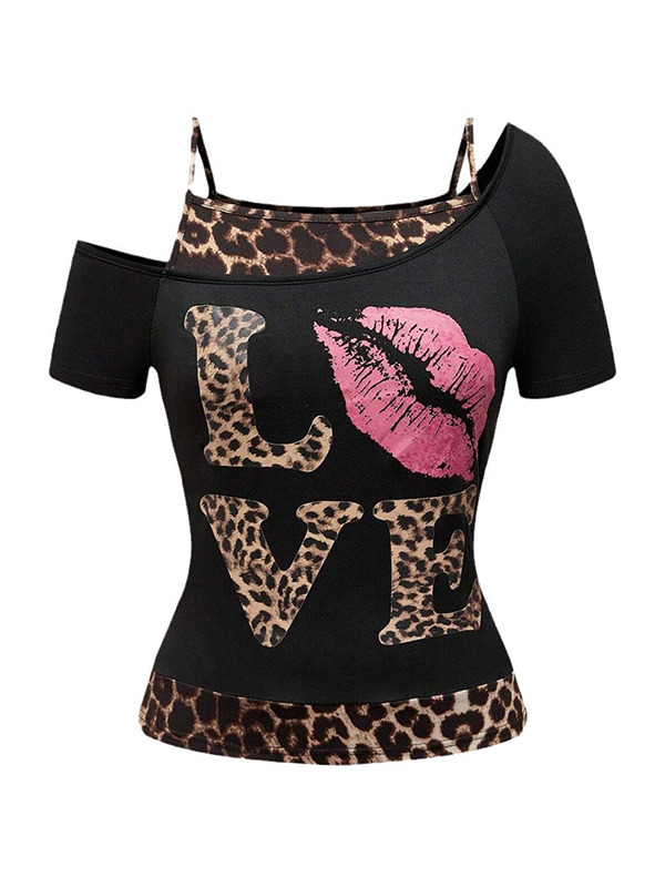 Camiseta de manga corta con estampado digital de un solo hombro