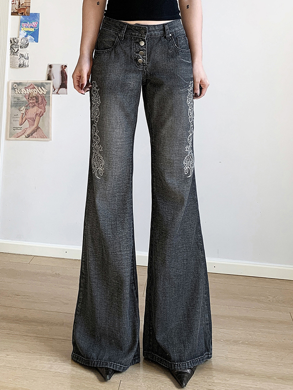 Vaqueros acampanados lavados con estampado vintage