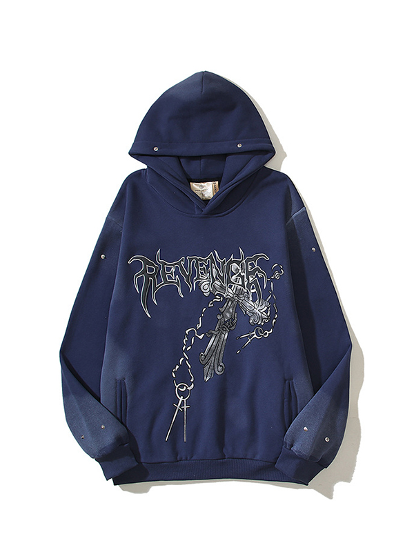 Sudadera con capucha de manga larga extragrande con estampado de terciopelo Cross Plus para hombre