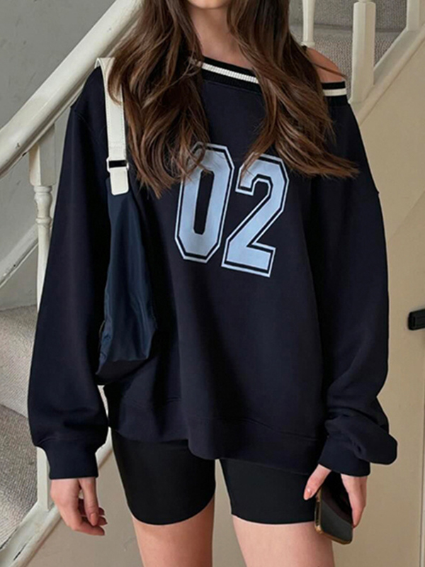 Sudaderas sueltas con estampado de letras en contraste