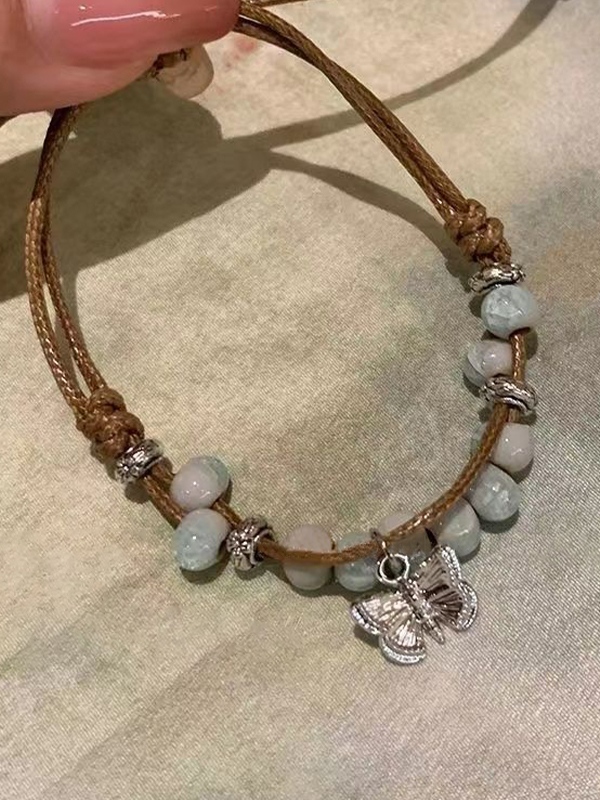 Pulsera trenzada con cuentas de cerámica de mariposa vintage