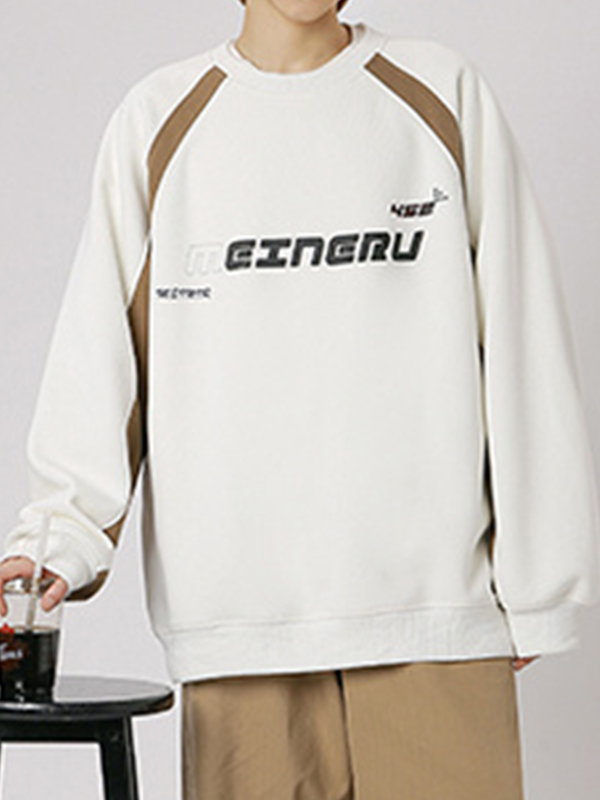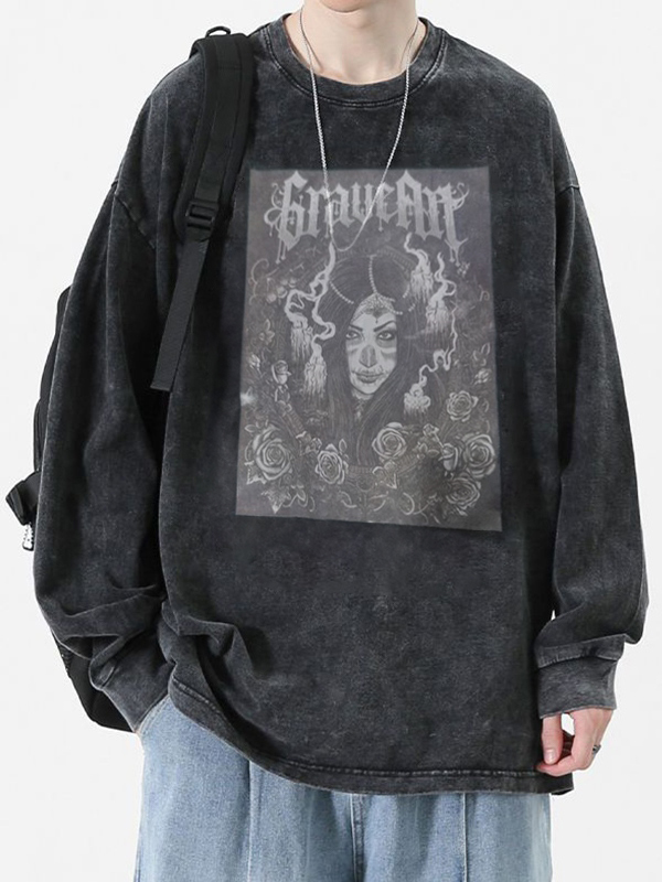 Camiseta de manga larga con diseño de patchwork y estampado vintage para hombre
