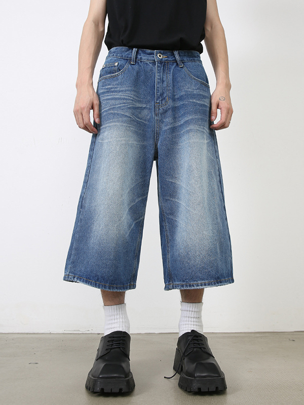 Pantalones cortos de mezclilla sueltos e informales para hombre