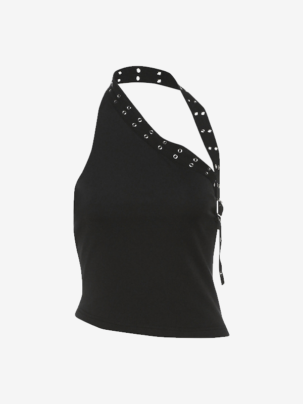 Top camisola ajustado con hombros inclinados y agujero de metal