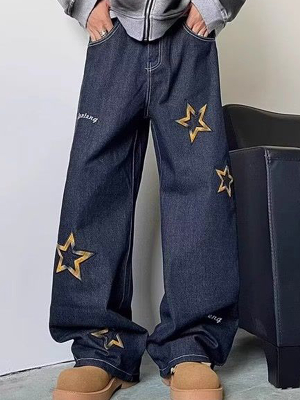 Vaqueros holgados con estampado de estrellas para hombre
