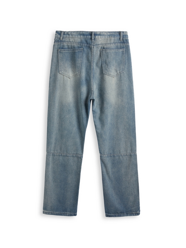 Diseño único: Los jeans presentan un diseño desgastado y lavado con detalles rasgados , dándole un toque de estilo callejero.