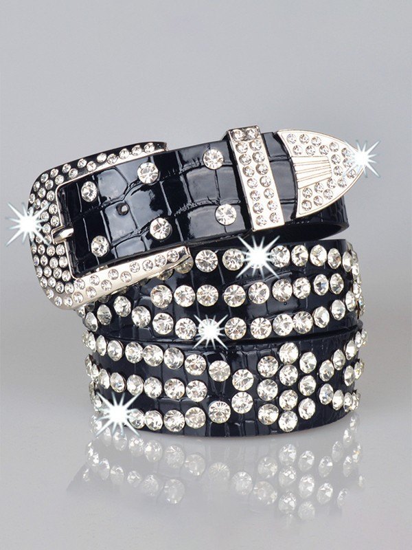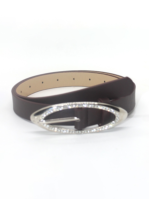 Cinturón con hebilla de diamantes de imitación brillantes y ovalados ahuecados