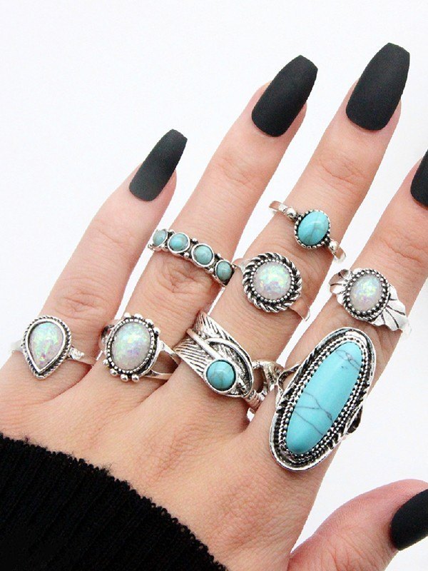 Juego de anillos colgantes de piedra vintage de 8 piezas