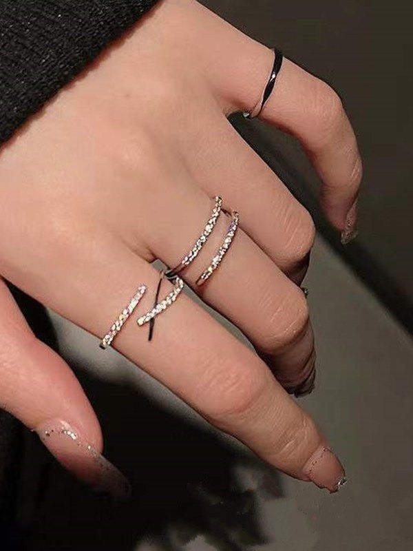 Juego de anillos de brazalete de diamantes de imitación de 3 piezas