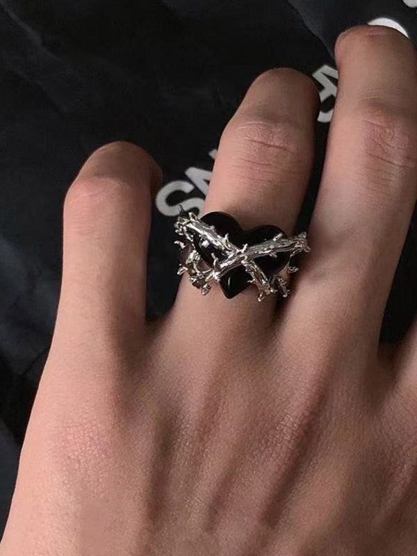 Anillo de brazalete con decoración de corazón de espinas