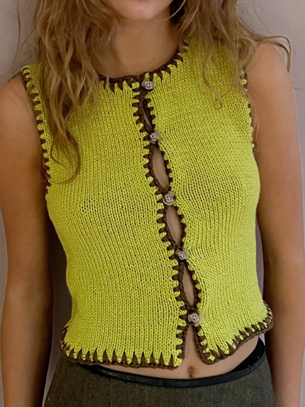 Chaleco halter con dobladillo de pendiente de madera y volantes