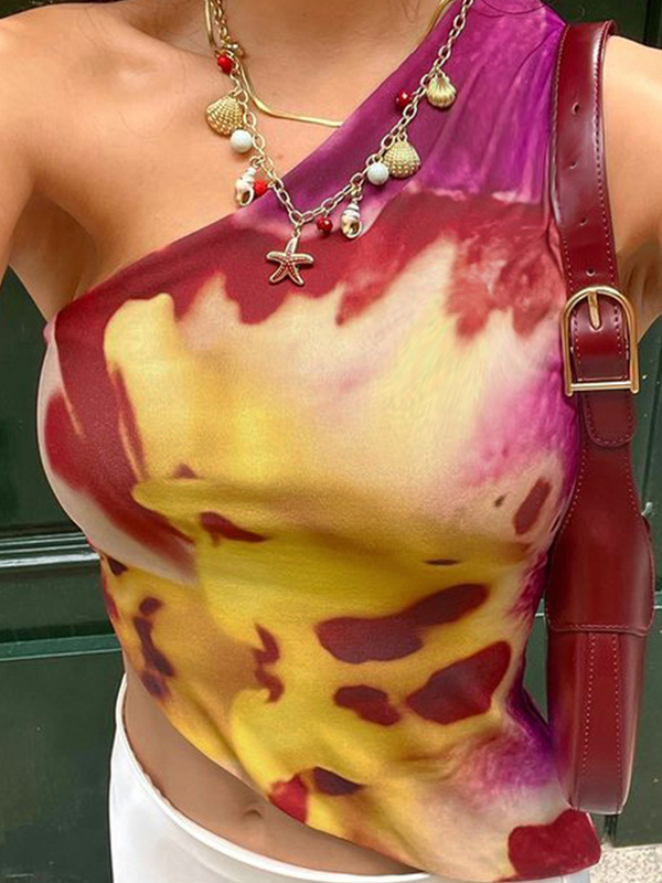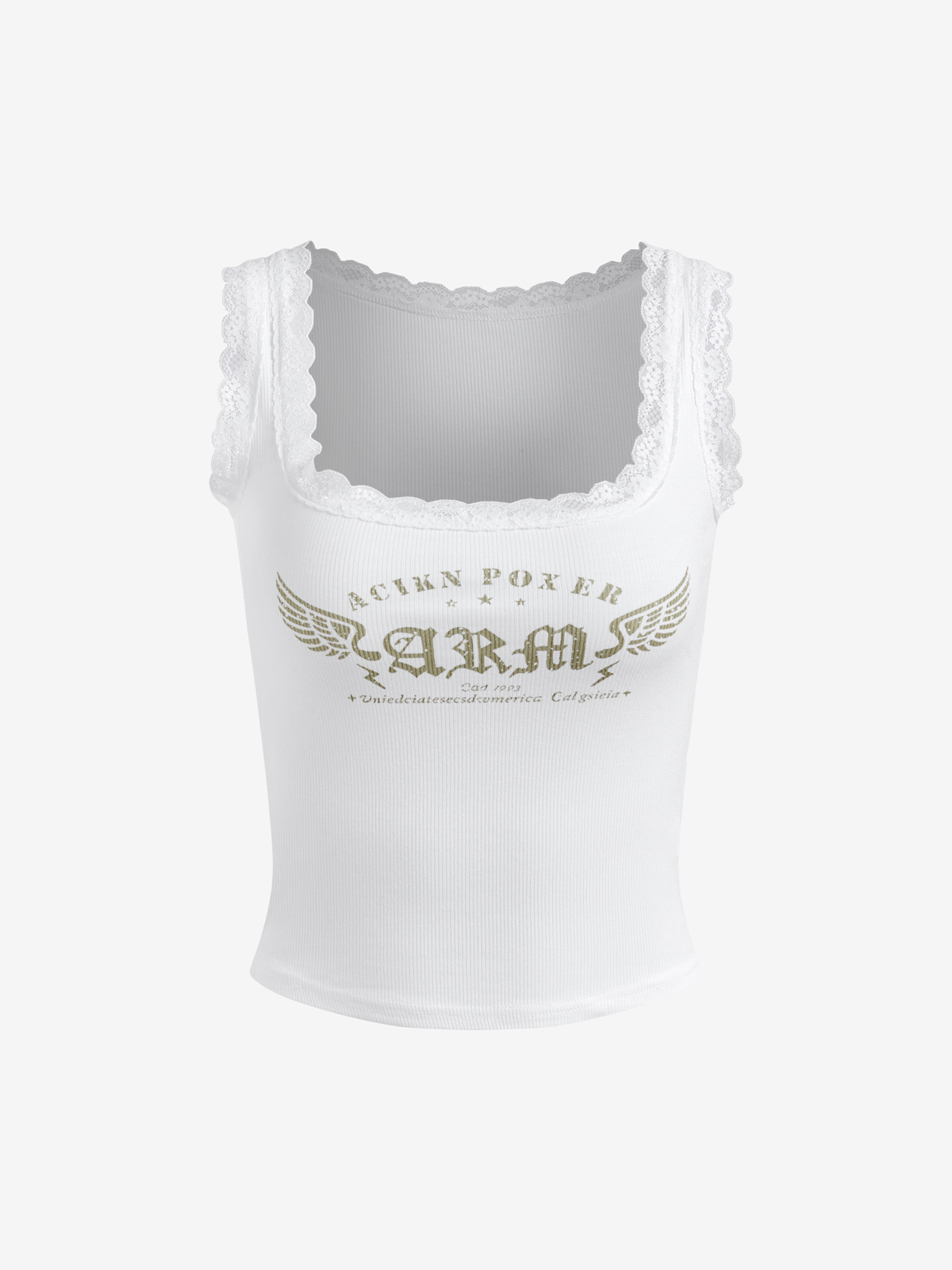 Camiseta ajustada de un solo hombro con encaje empalmado