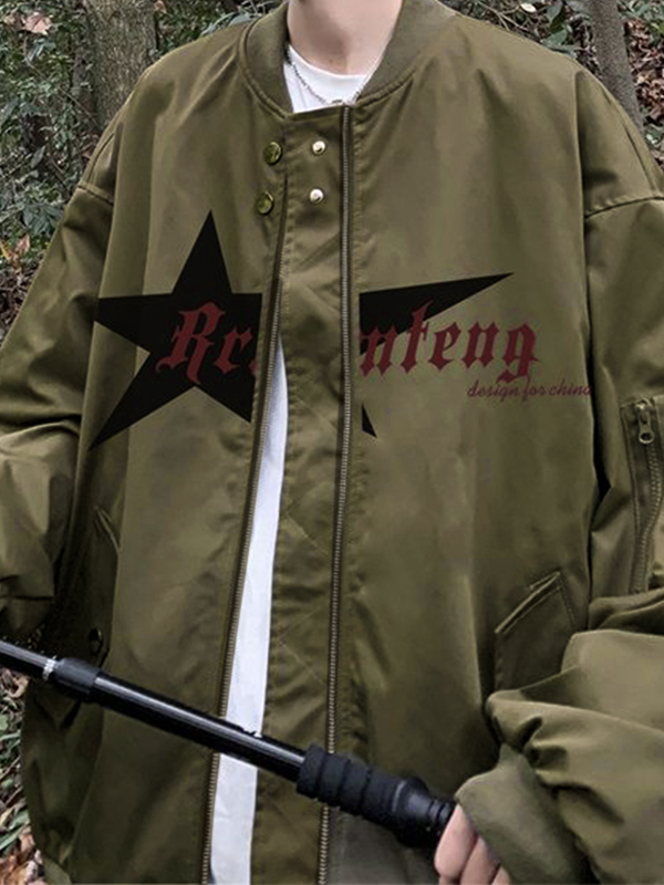 Chaqueta cargo con bolsillo y cremallera con estampado de estrellas para hombre