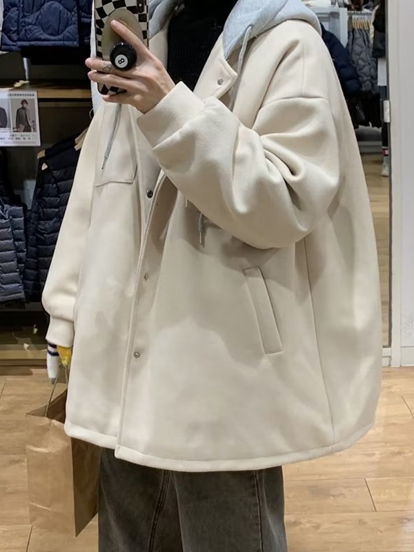 Chaqueta con capucha de mezcla de lana de patchwork para hombre