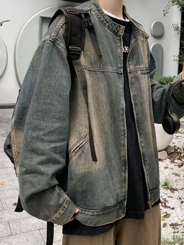 Chaqueta vaquera con diseño vintage y cremallera para hombre