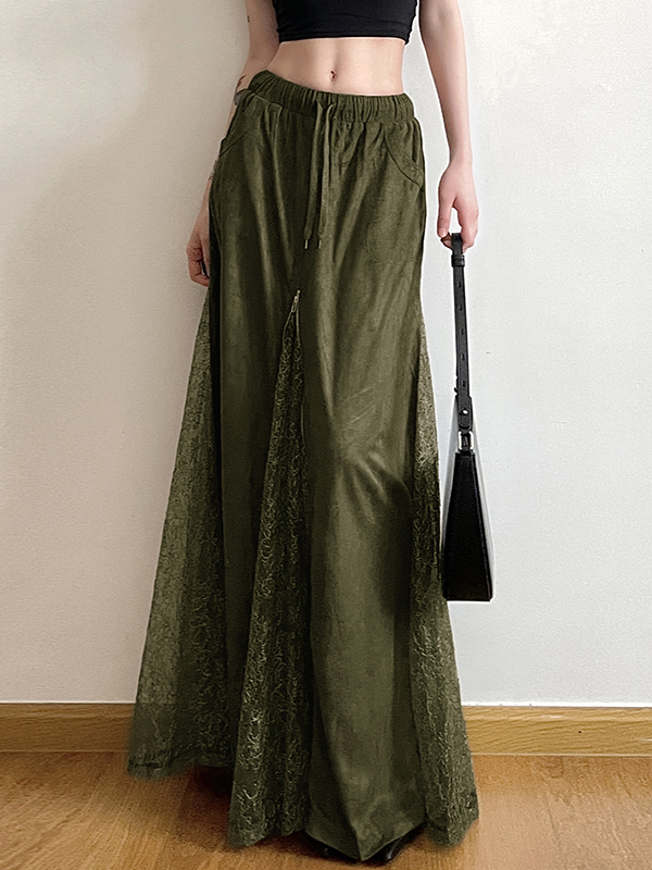Falda larga vintage de patchwork con encaje verde