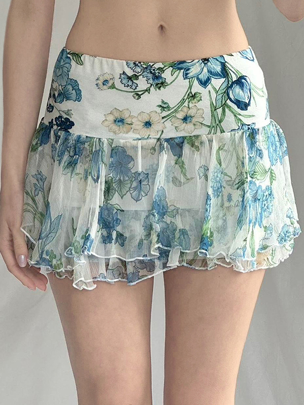 Minifalda irregular con volantes estilo resort