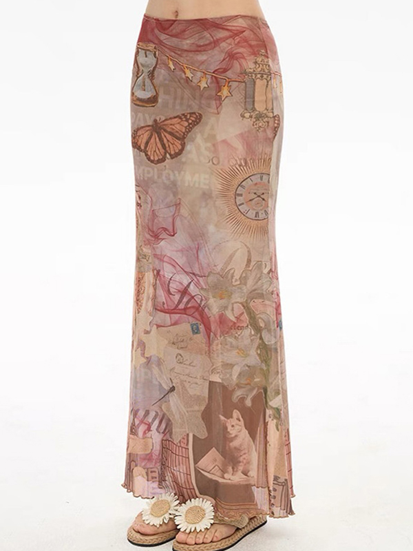 Falda larga con estampados creativos de moda