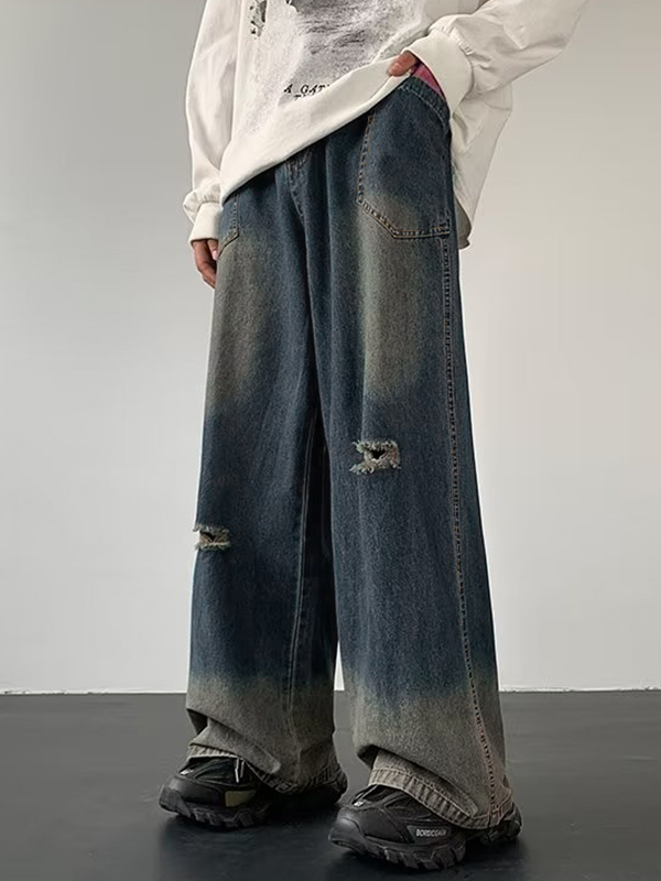 Jean suelto degradado con lavado cruzado para hombre
