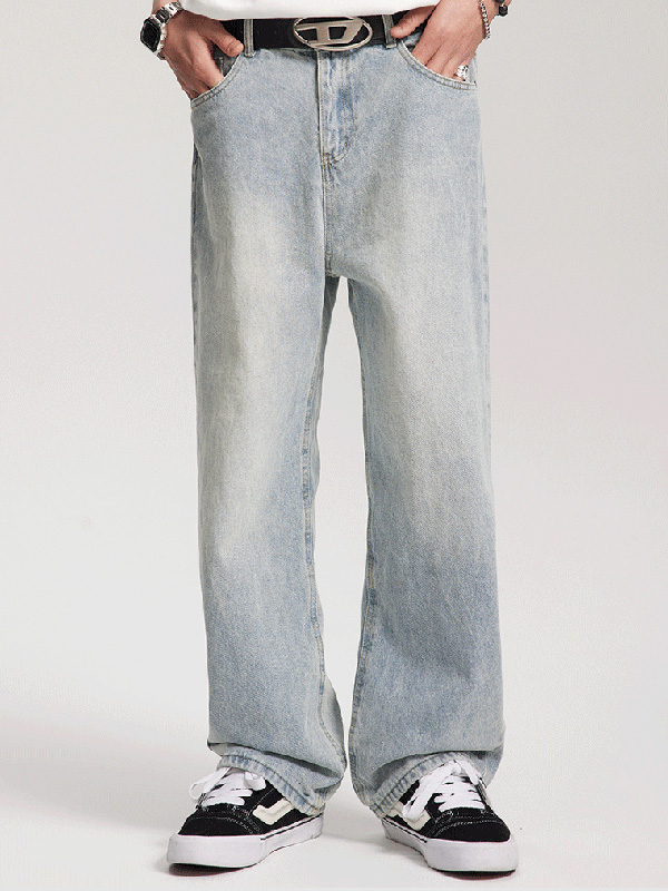 Vaqueros sueltos rectos lavados de moda