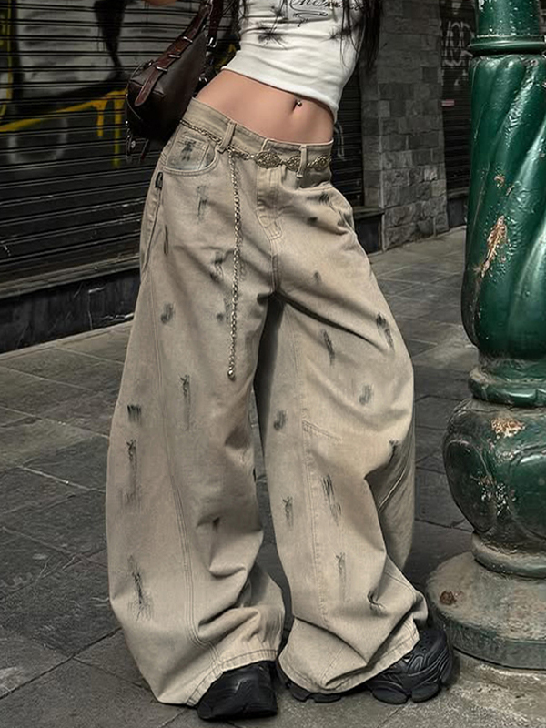 Vaqueros boyfriend vintage con múltiples bolsillos y diseño de camuflaje