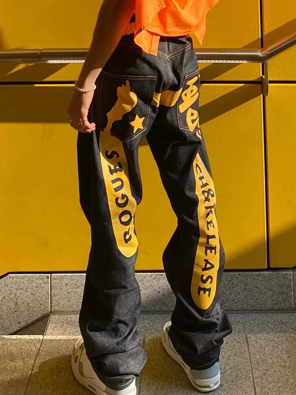 Pantalones vaqueros holgados con estampado de letras y calaveras para hombre