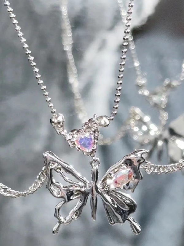 Collar con colgante de mariposa de diamantes de imitación de doble capa
