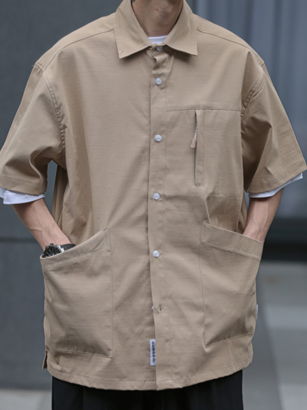 Manga corta retro japonesa suelta verde oliva