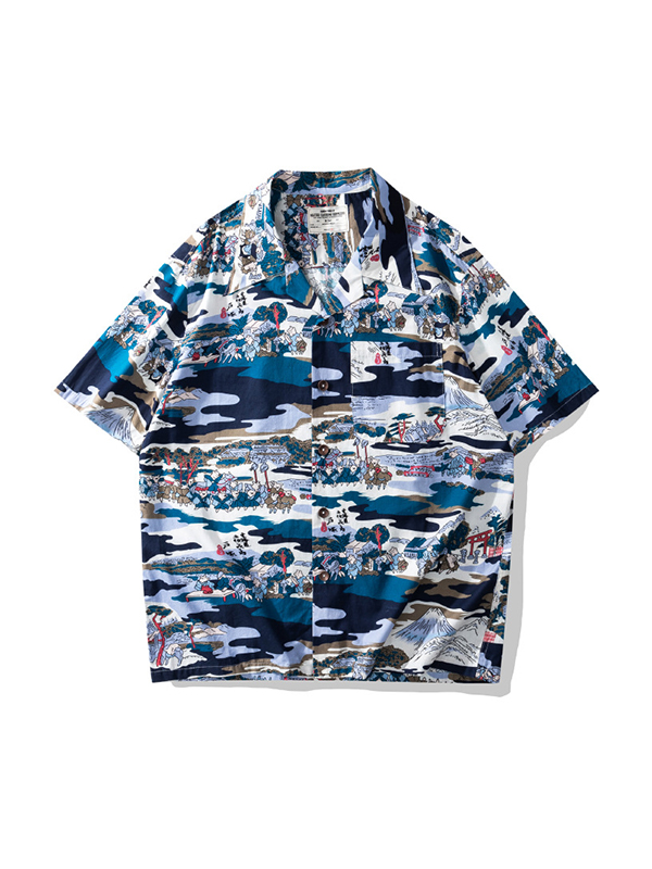 Camisa con estampado de palmeras y botones para hombre