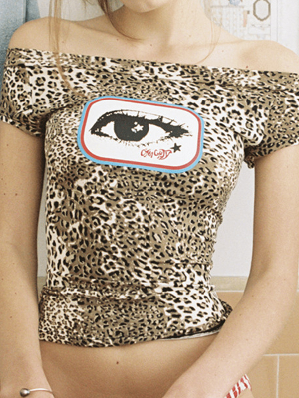 Camiseta de manga corta con estampado de leopardo y un hombro