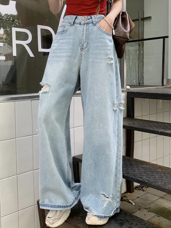 Vaqueros rasgados, rectos y holgados con manga raglán